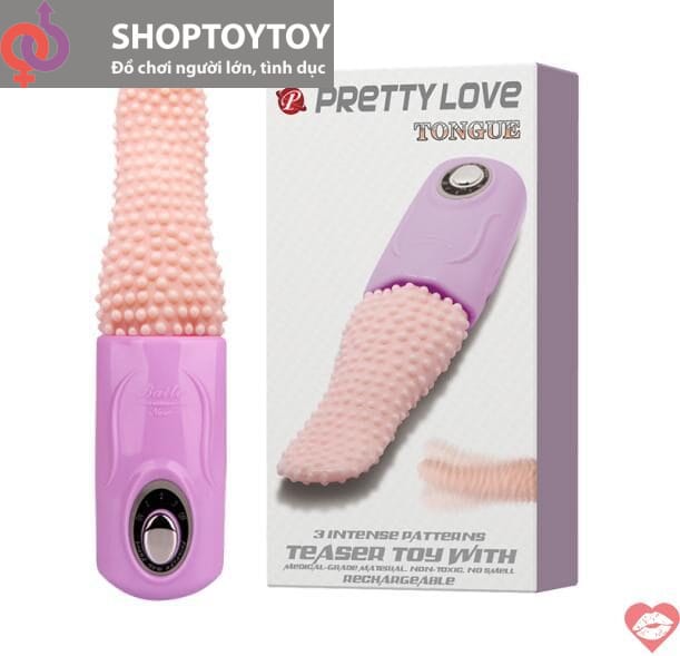 - Thông tin: Lưỡi rung Pretty Love là đồ chơi tình dục giúp tăng cường chuyện yêu trong chốn phòng the. Sản phẩm thiết kế giống chiếc lưỡi mềm lại làm từ silicon với nhiều gai bi nổi mang lại cảm xúc hưng phấn tột đỉnh cho nàng. Sản phẩm này có nhiều chế độ rung kích thích vùng nhạy cảm, chạm điểm G giúp bạn tình lên đỉnh ngất ngây.