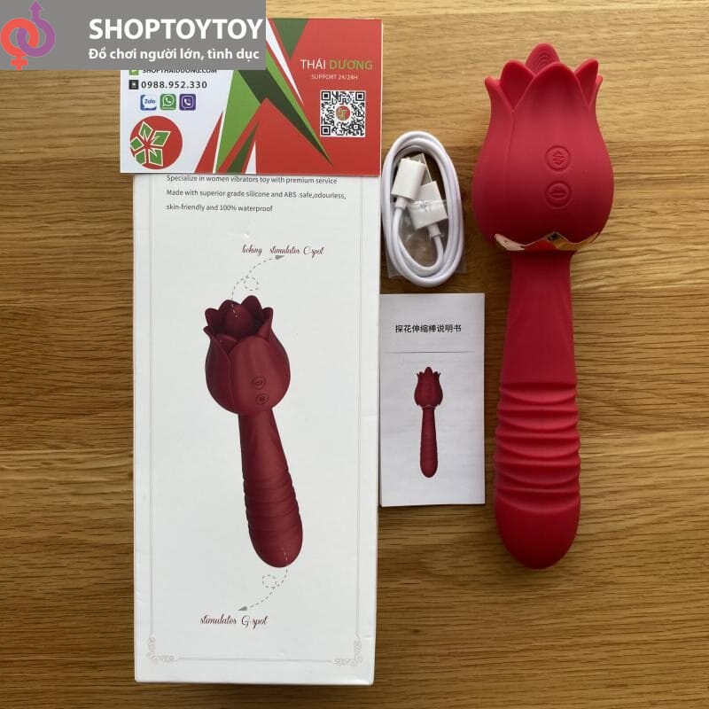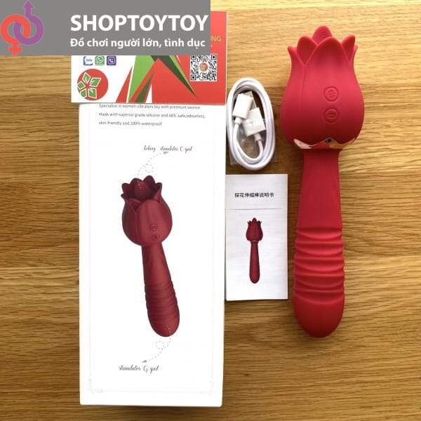 Sextoy Dương Vật Giả Rung Thụt – Kết Hợp 1 Đầu Lưỡi Liếm Hoa Hồng Cực Mạnh Cho Nữ Tự Sướng